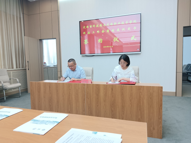 随后召开座谈签约会,定职院分管领导及相关处室、二级学院负责人与市县科技部门领导、业务科室负责人进行了座谈,重点围绕学院整体建设、科技项目申报、创新平台创建、科技成果转化、加强校企合作等方面进行了深入探讨交流,同时签订了《市科技局与定西职业技术学院工作会商制度议定书》,为加快推动定职院高质量高水平发展注入科技力量。